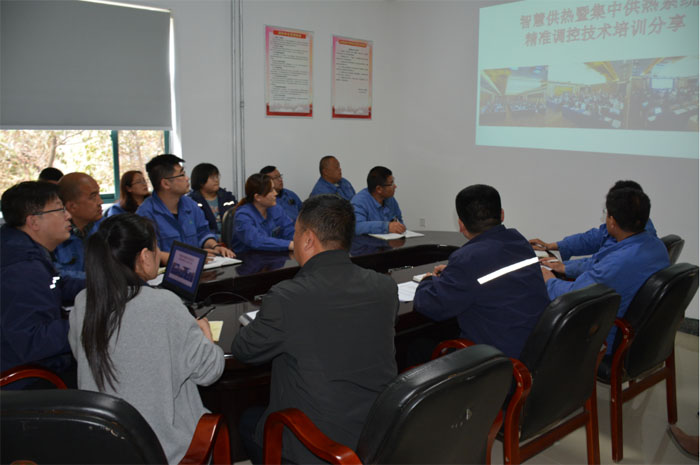 培訓(xùn)會(huì)上,孫永剛從供熱企業(yè)實(shí)現(xiàn)智慧供熱的意義、二次網(wǎng)信息化平衡管理系統(tǒng)、二次網(wǎng)能耗問(wèn)題解決方案以及換熱站故障處理和日常維護(hù)等方面進(jìn)行了專(zhuān)項(xiàng)培訓(xùn)。孫永剛在培訓(xùn)會(huì)上指出,隨著國(guó)民經(jīng)濟(jì)的不斷進(jìn)步,人們對(duì)供暖質(zhì)量的需求也在逐步提高。近幾年,山東聚源熱力公司緊跟供熱行業(yè)發(fā)展趨勢(shì),以科技引領(lǐng)供熱發(fā)展,充分借助物聯(lián)網(wǎng)、大數(shù)據(jù)、云計(jì)算著力打造智能化精準(zhǔn)供熱,實(shí)現(xiàn)了智能熱網(wǎng)平臺(tái)系統(tǒng)項(xiàng)目的成功落地。系統(tǒng)集合了遠(yuǎn)程數(shù)據(jù)采集、設(shè)備聯(lián)動(dòng)控制、高清視頻監(jiān)控及大數(shù)據(jù)分析于一體,實(shí)現(xiàn)采暖季運(yùn)行數(shù)據(jù)的匯總分析和趨勢(shì)測(cè)算,并實(shí)現(xiàn)系統(tǒng)自動(dòng)通過(guò)熱源廠、換熱站所轄熱負(fù)荷用熱特性、圍護(hù)結(jié)構(gòu)的不同,選擇不同的供熱控制策略,完成熱網(wǎng)調(diào)節(jié)周期由“日”級(jí)別到“分”級(jí)別的跨越。在實(shí)際工作中,如何科學(xué)運(yùn)用好智能熱網(wǎng)平臺(tái)系統(tǒng),這就要求我們要充分認(rèn)識(shí)打造智慧供熱的重要性,做好技術(shù)知識(shí)儲(chǔ)備,在信息采集時(shí)確保數(shù)據(jù)精準(zhǔn)真實(shí),根據(jù)運(yùn)行數(shù)據(jù)反饋形成智能調(diào)控策略,不斷突破二次網(wǎng)平衡調(diào)整的瓶頸,擺脫對(duì)經(jīng)驗(yàn)的依賴(lài),從而不斷提高供熱管網(wǎng)設(shè)備的安全水平,降低能源利用效率和運(yùn)行成本,有效提升企業(yè)的服務(wù)水平和用戶的舒適度。
