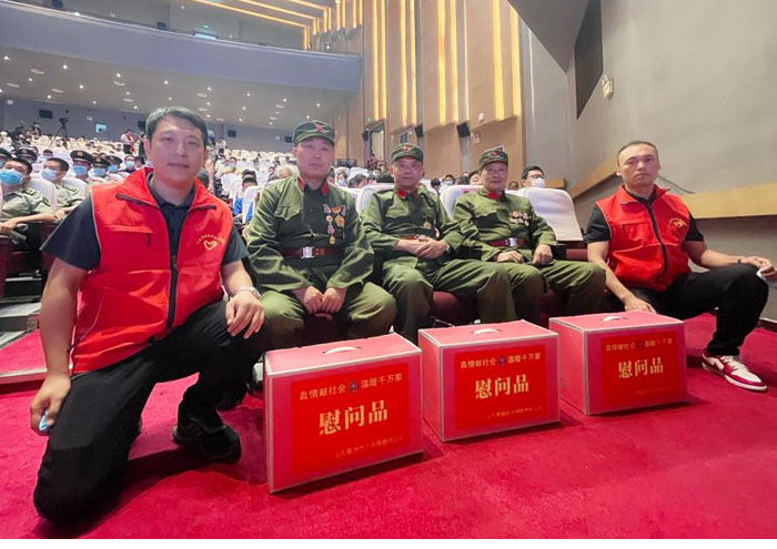 在“濟(jì)寧市慶祝八一建軍節(jié)文藝演出”現(xiàn)場,我們有幸見到了濟(jì)寧市抗日戰(zhàn)爭、抗美援朝、對越自衛(wèi)反擊的戰(zhàn)老兵代表,他們?yōu)榱吮Pl(wèi)祖國,離開家園,用滿腔的熱血和堅決斗志征戰(zhàn)戰(zhàn)場,換來了我們今天的幸福生活。借此機(jī)會山東聚源熱力公司組織退伍軍人送去節(jié)日的問候和慰問品。在與革命前輩們的交談中,我們感受的到戰(zhàn)火紛飛的革命歲月深深地刻進(jìn)他們的腦海里,愛國為民的革命初心在他們心中珍藏至今。為了抗擊敵人、保家衛(wèi)國,他們曾幾度將個人生死置之度外,沖鋒在前、毫不退縮。老人們又對我們年輕一輩寄予厚望,他們講道,現(xiàn)如今祖國繁榮富強(qiáng),人民安居樂業(yè),希望你們年輕一輩,接過時代的接力棒,銘記永不磨滅的愛國精神,在新時代建立屬于你們的功勛。